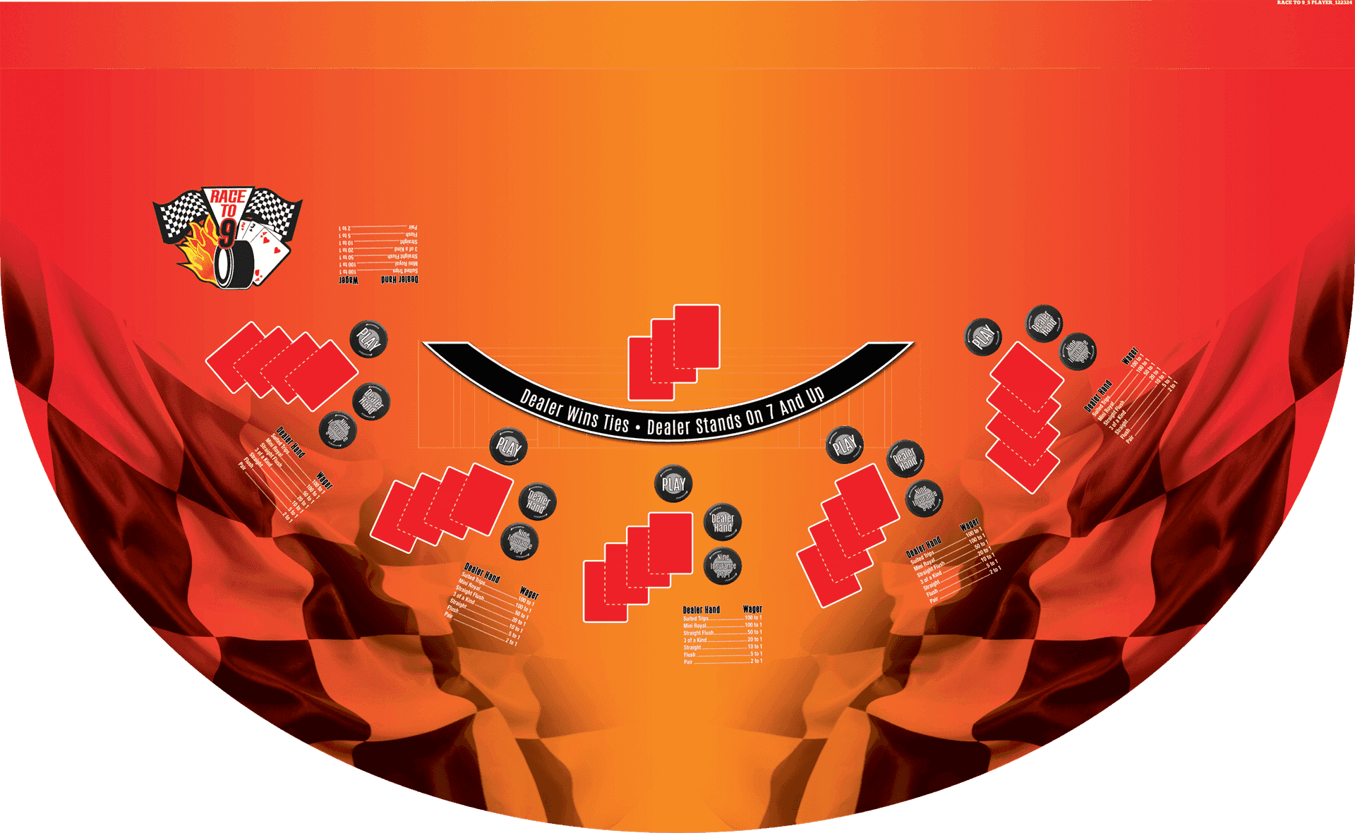 Rev your engines and feel the thrill of the speedway with the newest game on the market, Race to 9, a blazing-fast casino game that keeps the action roaring all the way to the finish line! Both the player and dealer will successively draw cards, trying to achieve the highest total score for their hand. The house edge for this game is 2.03%.